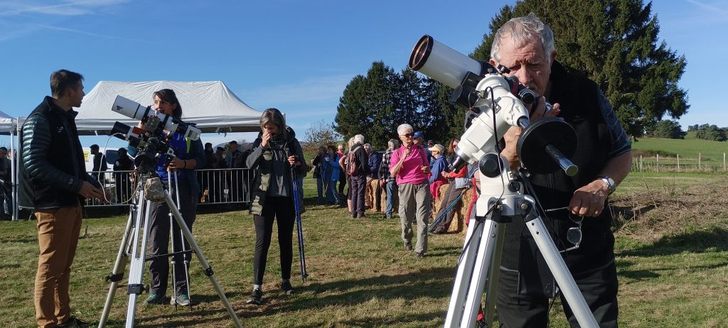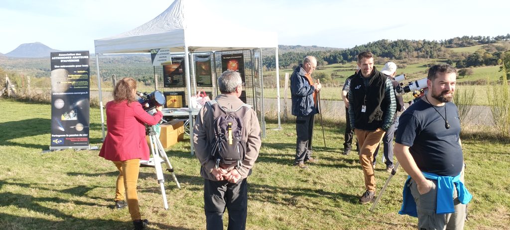 Cette animation fut dense, compte tenu du grand nombre de randonneurs qui se sont arrêtés à l’occasion du ravitaillement, et qui ont ainsi pu profiter de leur pause pour jeter un œil curieux à travers nos instruments, et nous questionner tout en regardant l’exposition. De nombreux flyers de notre association ont été distribués au cours des discussions, contribuant à mieux faire connaître nos activités aux plus grand nombre.