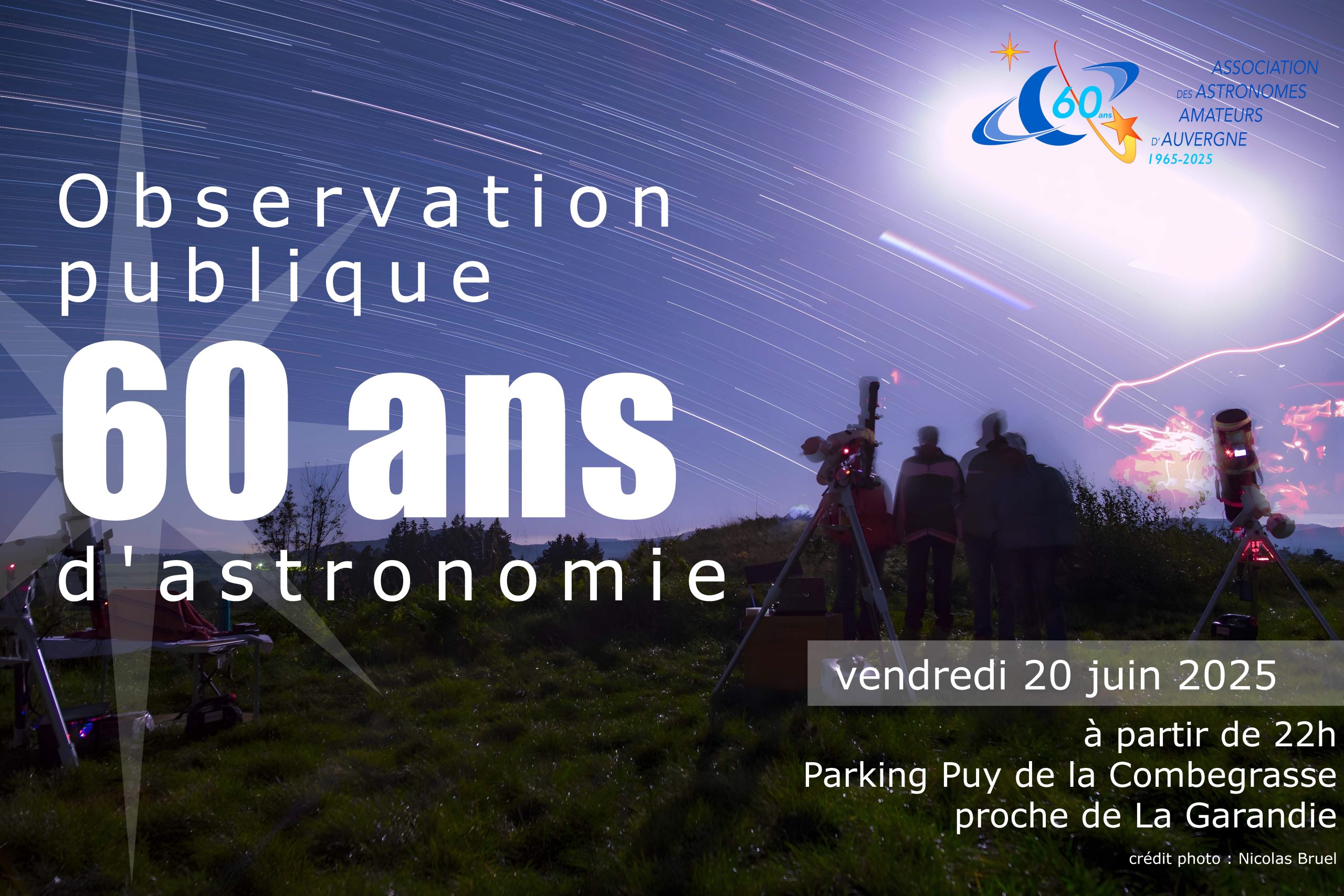 Grande soirée pour la nuit des étoiles à notre observatoire de La Garandie. Accès libre. Néanmoins, pour des raisons d’organisation et de statistiques, nous vous demanderons de bien vouloir vous inscrire sur le lien suivant (à partir du 14 juillet) … Lire la suite
