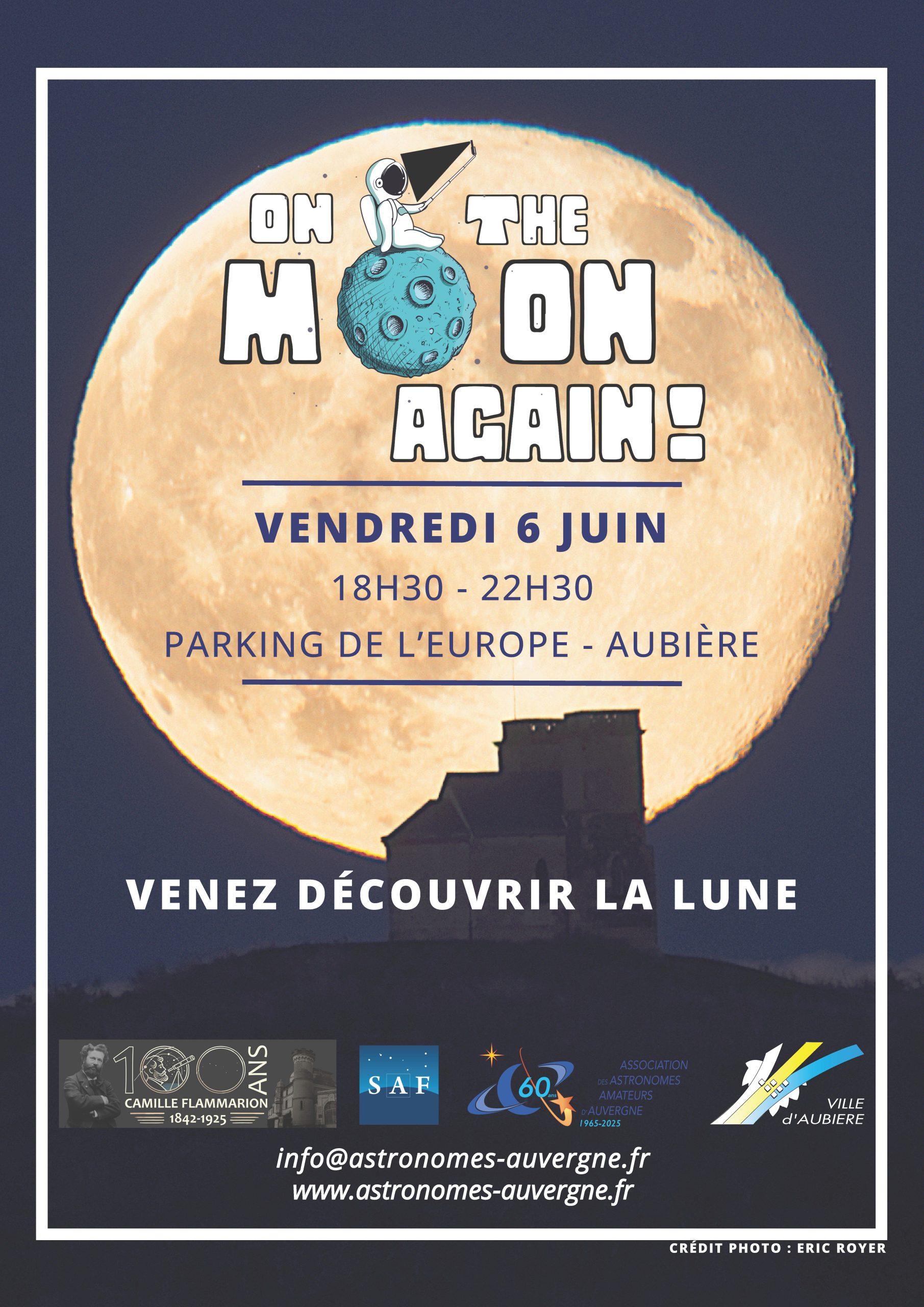 Animation gratuite, ouverte à tout public. Sur le parking de l'Europe à Aubière. En juillet 1969, 600 millions de personnes, sur tous les continents, suivaient le premier pas d’un homme sur la Lune. Pour célébrer le 50ème anniversaire, On … Lire la suite